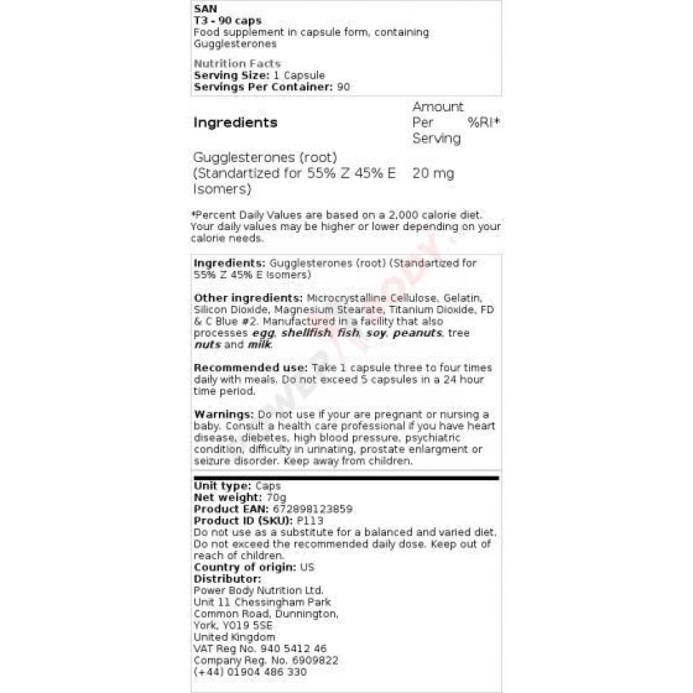| Posologie (médicale) | 25 mg de guggulstérones trois fois par jour |